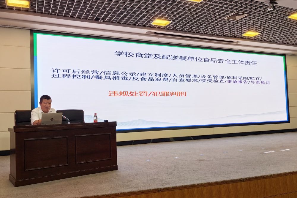 为贯彻山东省市场监督管理局、山东省教育厅、山东省卫生健康委员会《关于加强2024年暑期及秋季学期开学期间学校食品安全工作的通知》精神,落实食品安全“两个责任”要求,筑牢校园食品安全防线,全力保障师生“舌尖上的安全”,落实学校四届五次全会扩大会议关于“继续做好食堂管理和食品安全工作,稳妥推进食堂运营模式改革”的精神。8月23日上午,后勤管理处在第一报告厅对饮食服务管理中心全体从业人员进行食品安全、燃气安全和消防安全等方面的培训,会议由后勤管理处副处长张依凤主持。