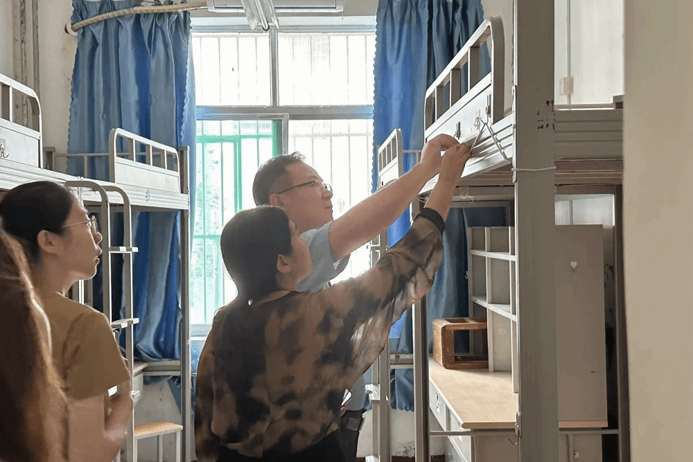 走进公寓楼,老师们仔细查看了地面、桌面、床铺、卫生间等区域卫生清洁情况、安全稳固情况、床贴规范情况、通风采光情况和桌椅配备情况,对学院能解决的问题及时登记并安排整改,对难以解决的问题第一时间向公寓管理、物业等有关部门报告反馈和协调帮助,争取所有宿舍在新生开学报到前达到预期标准。走访同时,老师们还特别关注了宿舍的消防设施、应急通道、安防系统、设备用电等是否符合相关规范要求,尽最大力量为商学院新生争取完善健康宜居的寝室生活空间。
