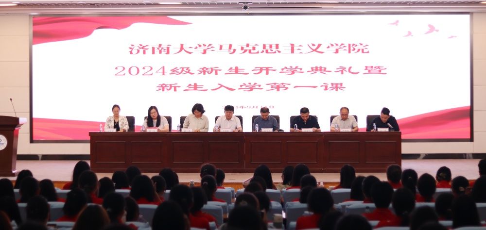 9月14日上午,马克思主义学院在第一学术报告厅举行学院2024级新生开学典礼暨新生入学第一课。学院领导班子成员、各科室负责人、学院教师代表、全体新生班主任以及2024级全体新生参加活动,典礼由学院正科级辅导员赵朔主持。