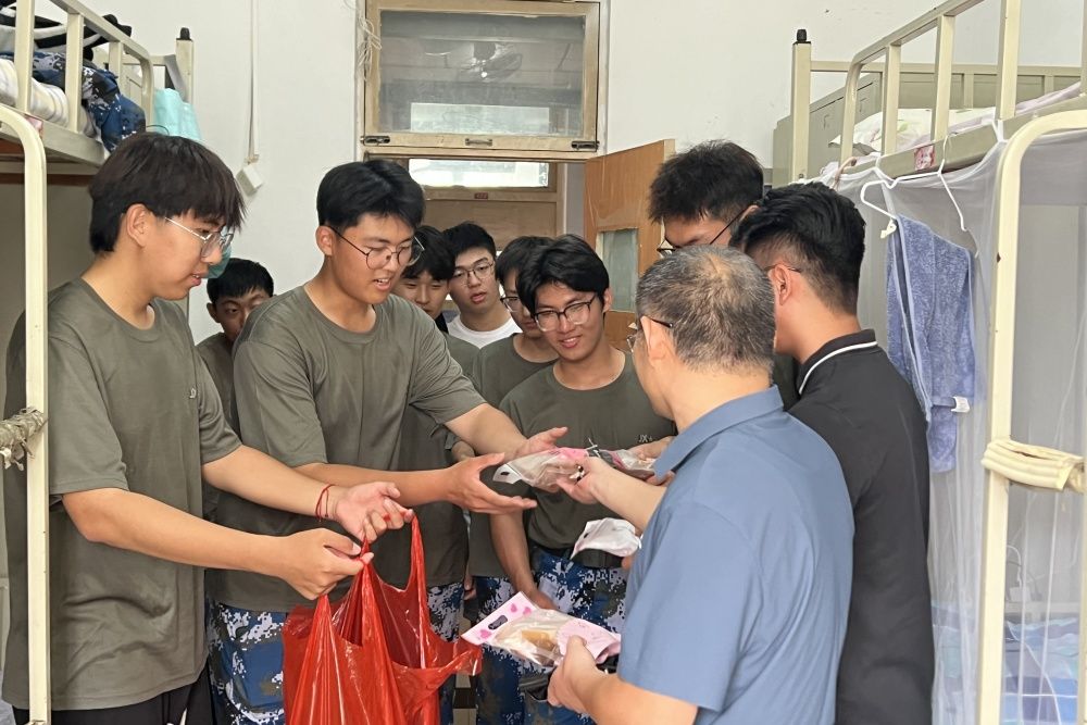 学院领导老师的到来,让同学们感到既惊喜又感动,一袋袋精美的月饼,传递着学院对同学们的温暖与爱。老师们亲切地与同学们交谈,关心同学们在学校如何度过假期,声声问候,暖人心扉,殷殷期望,催人奋进。杨立志向同学们致以最诚挚的节日祝福,他表示,同学们虽然没能与家人相聚,但马院就是同学们第二个家,希望大家可以感受到学院的温暖,老师和同学就是彼此的家人,我们团聚在此,共享中秋。