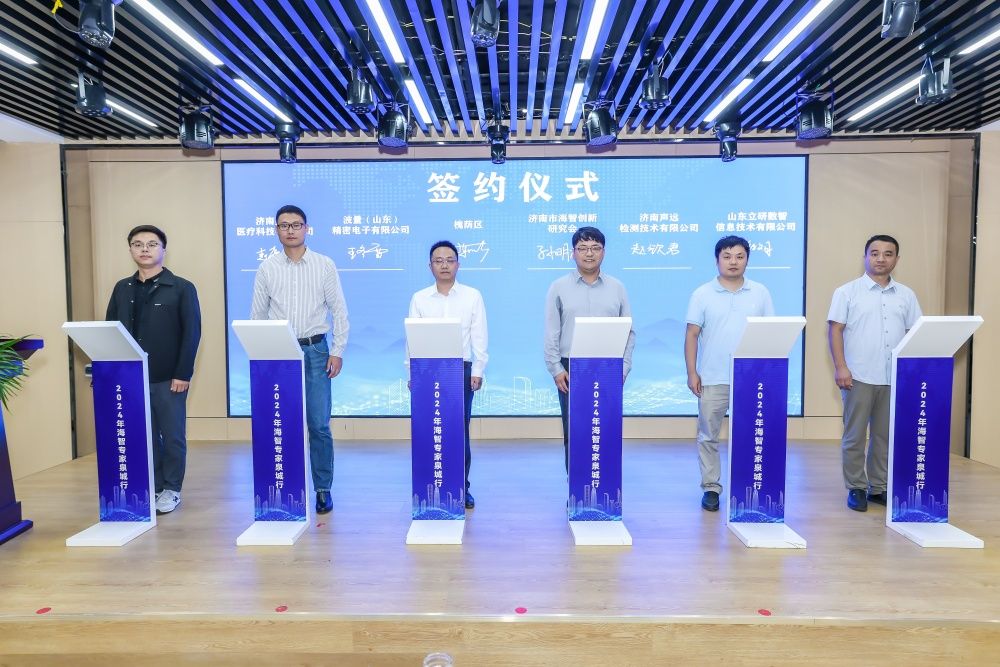 活动期间,济南市科协党组成员、副主席贾文涛,槐荫区委常委、组织部部长、党校校长何小刚为槐荫区海外高层次人才保育箱孵化器揭牌。ac米兰自动化与电气工程学院赵康博士、赵钦军副教授、王冬雪博士作为孵化器首批入驻企业代表,在活动现场进行了入驻签约。信息科学与工程学院耿浩坤博士作了海外归国人才落地经验分享。