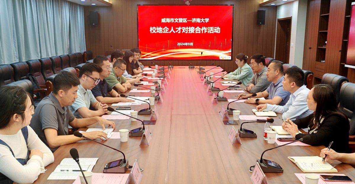 9月25日,威海市文登区人社局公共就业和人才服务中心副主任王建彬一行来ac米兰开展人才对接合作活动。文登区人社局有关负责同志,当地5家优秀企业代表,学校党委学生工作部(处)副部(处)长董俊杰,党委研究生工作部副部长王磊,机械工程学院党委副书记、副院长孙成政,生物科学与技术学院党委副书记、副院长武芳,部分学院毕业班辅导员参加活动。活动由董俊杰主持。