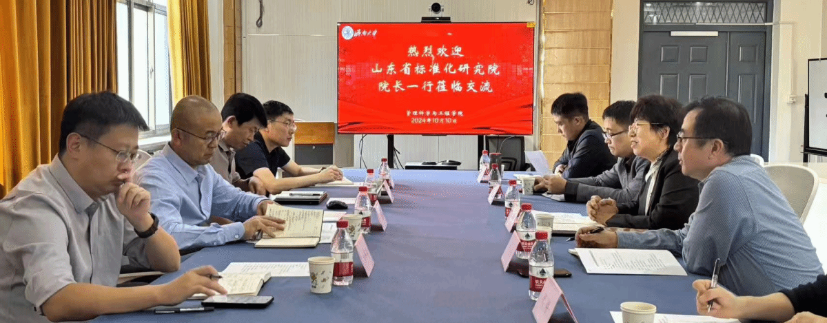 10月10日,山东省标准化研究院院长范德军、科研与事业发展办公室主任刘志强,标准信息研究所所长杨沣江、党政办公室副主任张欣来学院调研座谈。管理科学与工程学院院长徐伟、院长助理常相全,应急与标准化系负责人等参加了本次座谈,会议由院长助理常相全主持。