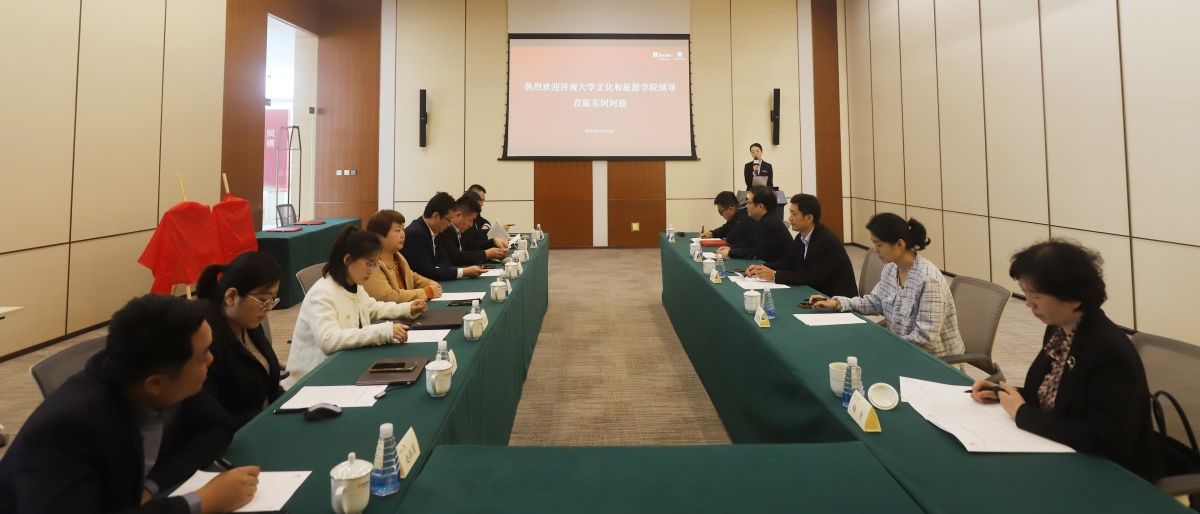 为进一步做好文化和旅游学院相关专业建设,探索多领域人才培养新模式、加强校企合作共建、培养社会应用研究型人才,10月25日,文化和旅游学院党委书记孟德洋,党委副书记信书珊,副院长张炳文一行前往聊城东阿阿胶股份有限公司交流洽谈并签约大学生就业实习基地和MTA实践教学基地。东阿阿胶体验营销事业部总经理张庆伟、东阿阿胶肉苁蓉健康科技有限公司总经理贝广、东阿阿胶体验事业部人员一同参加。