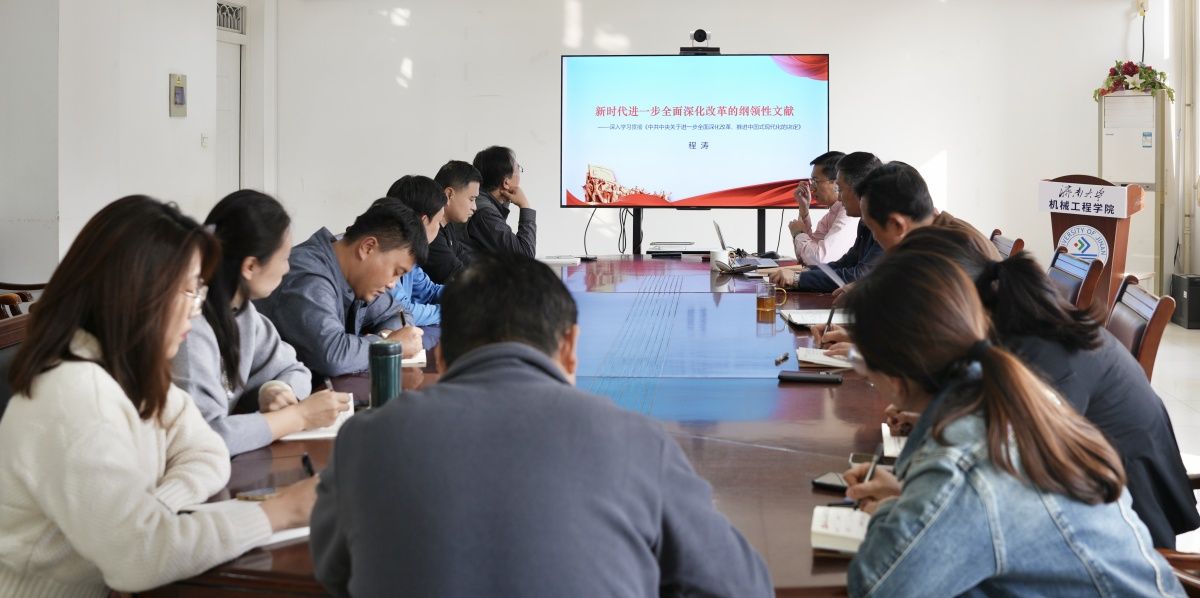 随后,程涛结合机械工程学院的实际情况,对全会精神进行了深入解读和宣讲。他要求,全院师生要牢牢把握进一步全面深化改革的重大意义,这对于学院教学、科研和管理水平的提升起到关键作用。同时,他鼓励全院师生要敢于创新、勇于实践,把全会精神内化于心、外化于行,切实把学习成果转化为推动学院各项工作的强大动力和实际成效。
