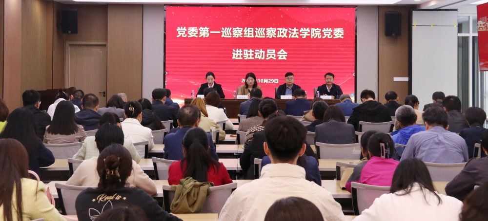 按照学校党委巡察工作统一部署,10月29日下午,ac米兰官方网站党委第一巡察组巡察政法学院党委进驻动员会在学校第五学术报告厅召开。学校党委巡察工作领导小组成员、纪委副书记孙菲菲,党委第一巡察组组长丁立波及巡察组全体成员,政法学院全体教职工、部分学生代表参加会议。会议由政法学院党委书记李春慧主持。