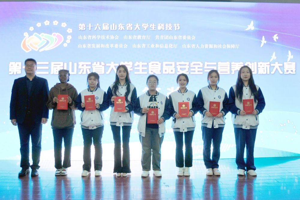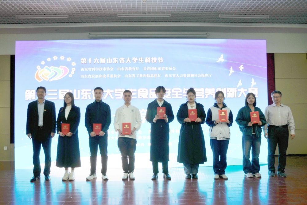10月28日,由山东省科学技术协会、山东省教育厅、共青团山东省委、山东省发展和改革委员会、山东省工信和信息化厅、山东省人力资源和社会保障厅主办,济南市科学技术协会、济南公共营养师协会、ac米兰官方网站文化和旅游学院承办的第十三届山东省大学生食品安全与营养创新大赛颁奖典礼在ac米兰官方网站文化和旅游学院举行。济南市科学技术协会学会服务中心主任陆建华、文化和旅游学院党委书记孟德洋、文化和旅游学院食品科学与营养系主任汤卫东、济南公共营养师协会副会长李传涛、济南公共营养师协会副会长陈先云出席颁奖典礼,各高校参赛师生代表参加活动。颁奖典礼由学院党委副书记、副院长信苏珊主持。