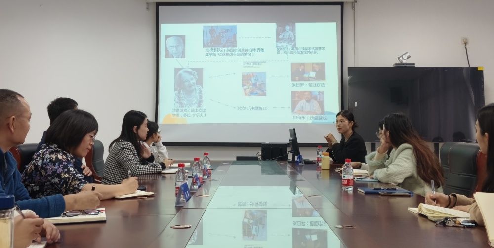 张晶强调了沙盘游戏疗法在高校心理咨询中的重要性,他指出,随着社会的快速发展和大学生心理需求的日益多样化,沙盘游戏疗法作为大学生较为喜爱的咨询方式,对心理咨询师的专业素养提出了更高的要求,此次活动是对心理咨询师专业成长的又一次有力推动,要求团队成员在实践中不断探索创新,进一步丰富和完善心理健康教育的手段和内容,提升整体心理健康教育工作的质量和效果。随后,纪晓琳以其丰富的沙盘游戏治疗经验和深厚的心理学理论功底,详细阐述了沙盘游戏疗法的起源、基本设置以及具体实施流程,并通过生动的案例分享,让参与者深刻理解了沙盘游戏在促进个体心理成长、解决心理困扰方面的独特魅力。成员们积极参与讨论,就沙盘游戏疗法的具体应用、案例分析等方面进行了深入交流。