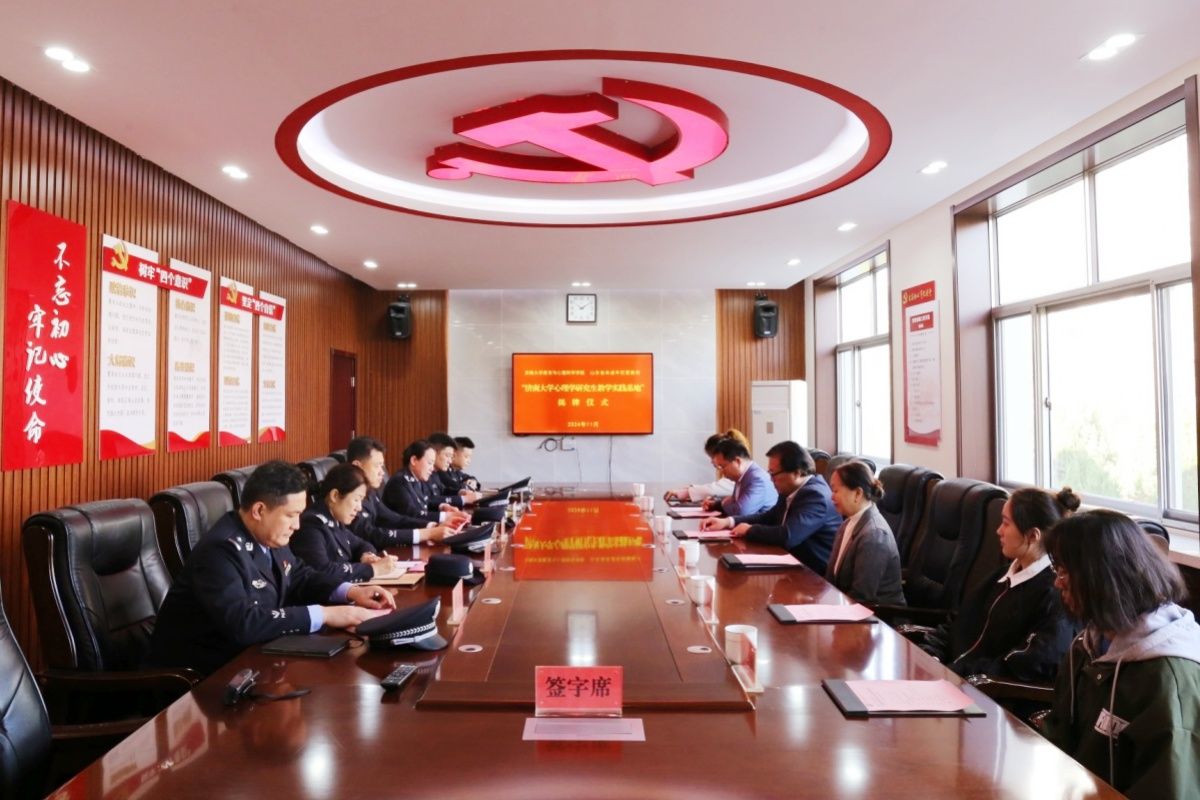 11月5日,教育与心理科学学院一行前往山东省未成年犯管教所开展研究生教学实践基地签约暨揭牌仪式。省未成年犯管教所党委书记、所长马霄鹏,党委副书记、政委陈立云,教育与心理科学学院党委书记季竹君,冯晶副教授、乔福强副教授及学生代表出席仪式。