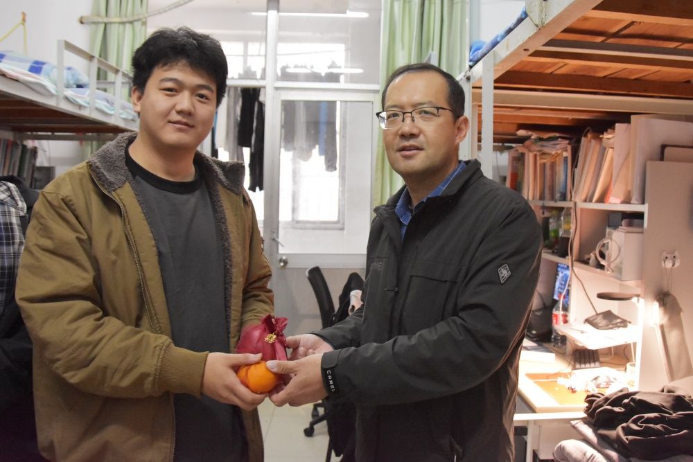 问候寄深情,期许久绵长。在这最后的冲刺阶段,学院为每一位2025届本科毕业生送上特别定制“加油包”,内含苹果和橙子,祝愿同学们未来坦途,“红”运当头,心想事“橙”。小小的“加油包”蕴藏着学院对同学们最真挚的祝福和最美好的期许。在发放慰问“加油包”的过程中,毕业班辅导员深入了解学生的思想、学习、生活等方面情况,详细询问了同学们的学习进度、生活状况以及备考中遇到的困难和挑战,帮助大家解决实际困难。张琦高度赞扬了同学们持之以恒、奋勇拼搏的精神风貌,鼓励同学们保持积极向上的心态,坚定信念持续努力。最后,他叮嘱同学们,在最后的冲刺阶段要劳逸结合,保持一颗平常心,放平心态,坚持到底,以最饱满的精神状态和最佳的身体状态迎接挑战,厚积薄发,一战成硕。此次暖心慰问活动不仅是对学生们的一次精神鼓舞,更是学院践行“以学生为中心”教育理念的生动体现。