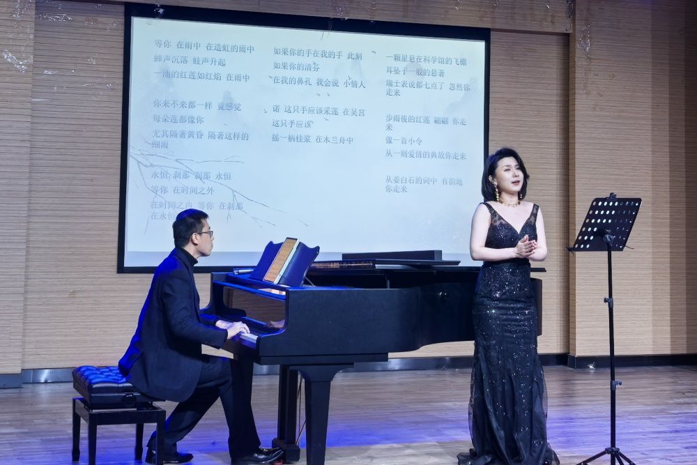 每一个音符的跳跃、每一句歌词的流淌,都蕴含着深厚的文化底蕴,引领观众步入一个诗意盎然、情感丰富的艺术殿堂。观众在沉浸于这场视听盛宴的同时,不仅领略到了音乐艺术的多元魅力,而且深刻感悟到了中国传统文化的博大精深。此次音乐会使音乐与文化的深度融合得到了全面而深刻的体现,艺术家们凭借卓越的技艺和深情的表达,将中国艺术歌曲的丰富意蕴与独特风采展现在观众眼前。未来,学院将继续坚守“以美育人、以文化人”的教育理念,不断推进美育与人文教育的深度融合,培养学生的审美情趣与文化修养,确保他们在掌握专业技能的同时,能够深入理解并传承中华优秀传统文化,通过将美育融入人才培养的各个环节,为社会输送更多德才兼备、综合素质出众的高素质人才。