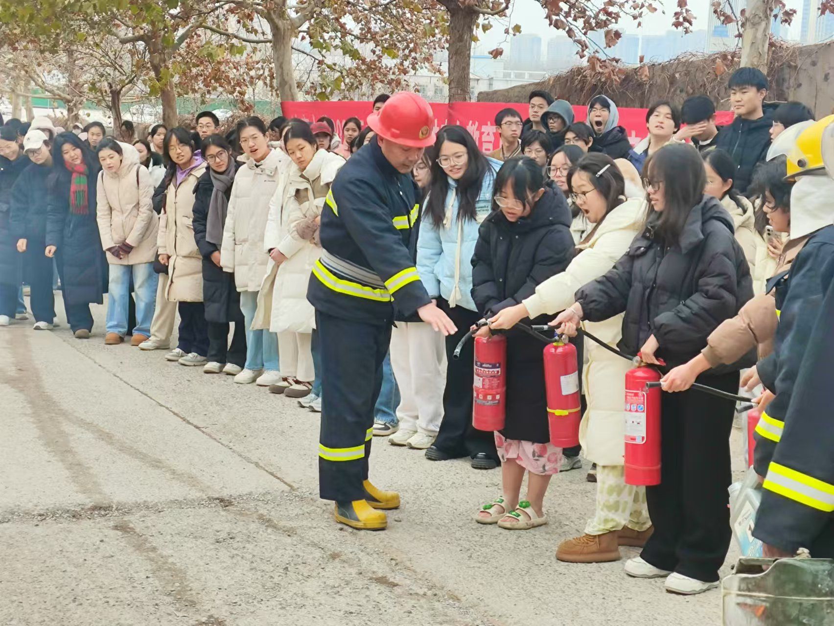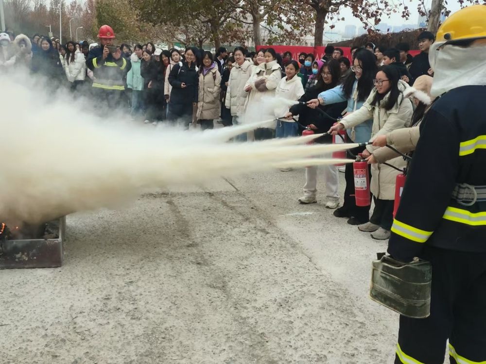 疏散演练结束后,安全管理处老师对灭火器的使用方法进行了讲解,并演示了如何正确使用灭火器。在安全管理处老师的指导下,同学们积极参与灭火演练操作。通过灭火演练极大地提高了大家应对火灾的能力和安全意识。