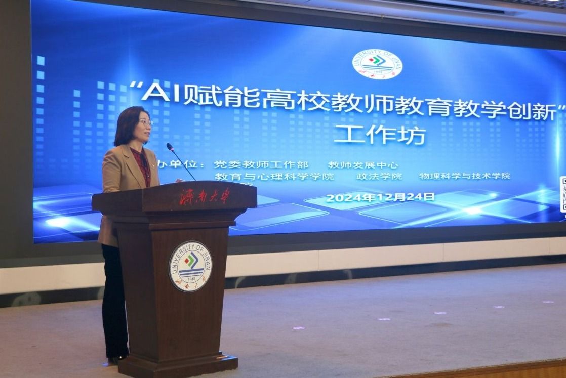 12月24日,“AI赋能高校教师教学科研创新”工作坊在学校第一学术报告厅举办,活动邀请秋叶集团培训师郑远霞作专题辅导,副校长王霞出席活动并发表讲话。