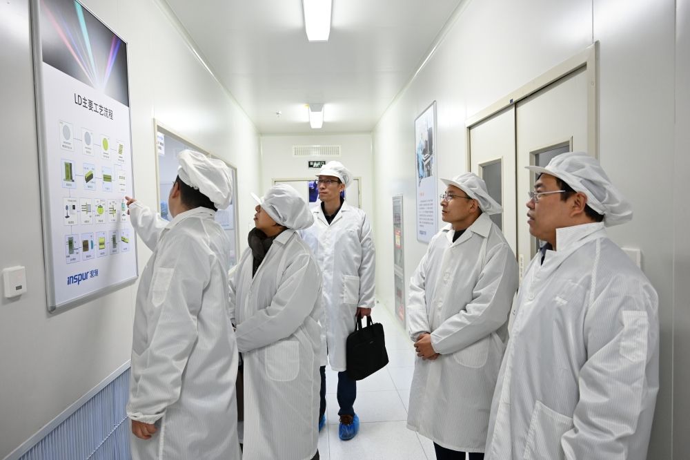 学院一行参观了浪潮华光国内领先的LED芯片车间一体化生产流水线、企业产品展厅和企业文化展厅,了解了公司20余年积累所形成的完整研发、生产、营销和安全保障体系。通过公司生产负责人的讲解,也深入了解到在新质生产力的大力助推下,企业在产业升级、技术革新、设备自主化和生产自动化建设中取得的显著成效,未来将借助国内国际双循环市场东风,以更优质的产品和服务构建企业新发展格局。