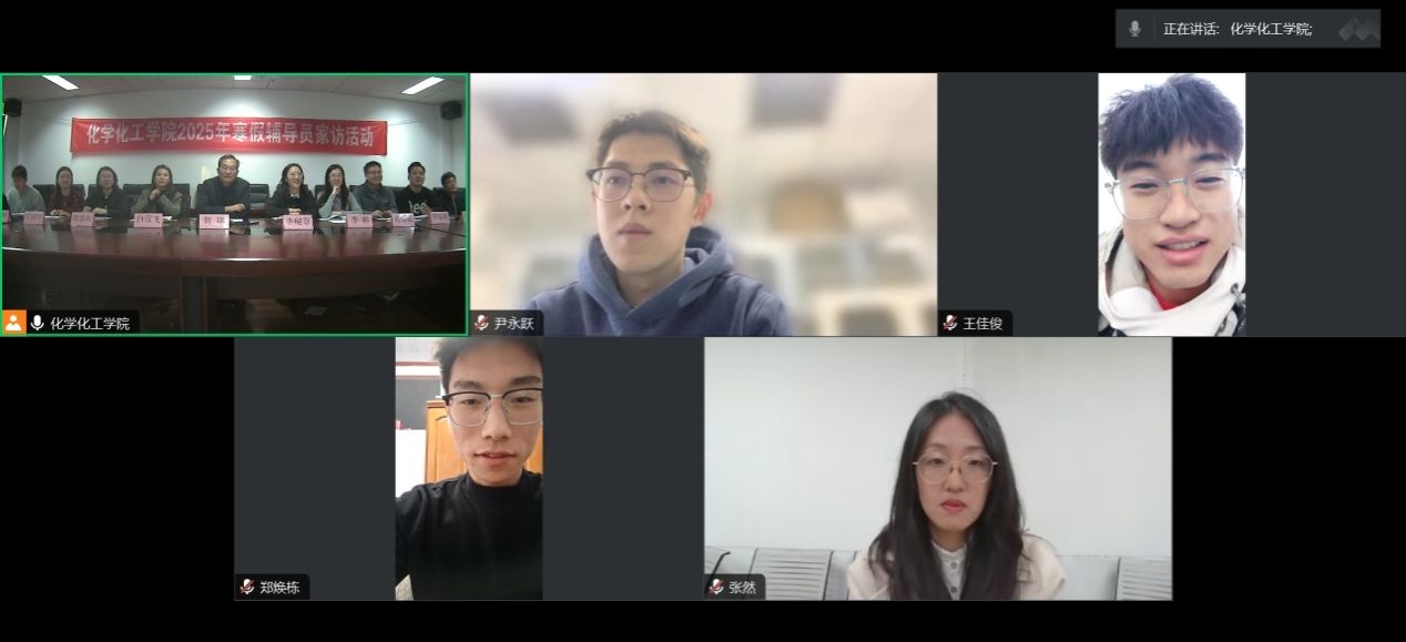 为进一步深化“三全育人”丰富内涵,凝聚家校力量,促进学生健康成长和全面发展,1月12日,化学化工学院开展2025年寒假线上家访活动,学院党委书记贺铭,党委副书记、副院长白雪飞,全体辅导员,历届“榜样团”成员、校友代表,各年级学生代表,家长代表参加活动。