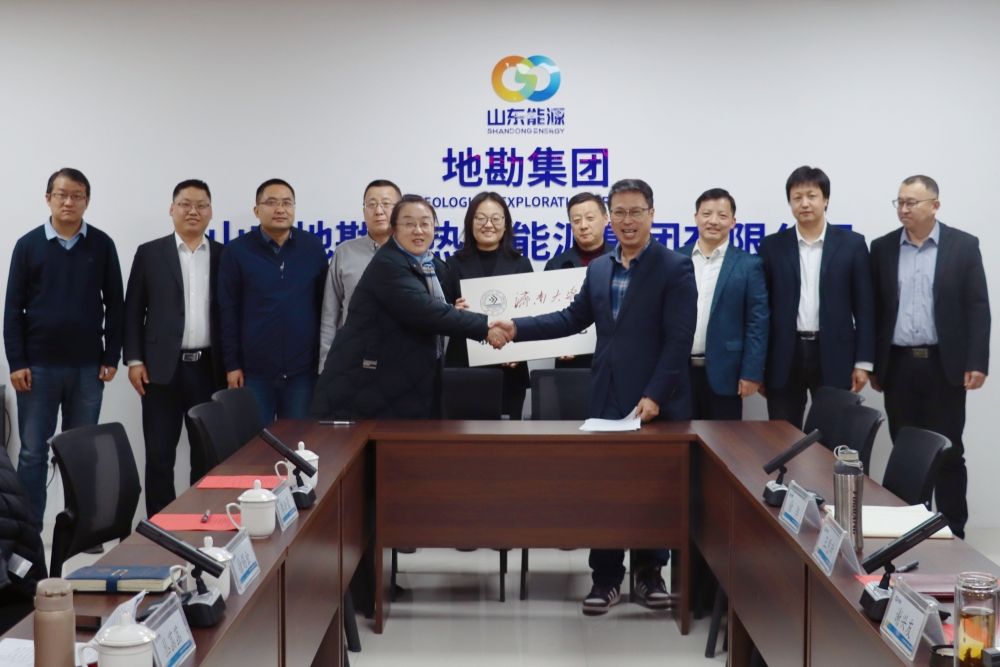 在山东地勘地热新能源集团有限公司,地勘集团党委委员、副总经理王恩琦,总经理助理、地热新能源公司董事长公司总经理谢兴友,以及公司其他班子成员、校友代表参加座谈会。双方分别就近年来发展情况、产学研等合作交流情况、就业招聘情况进行充分沟通,并签订就业实习基地协议。