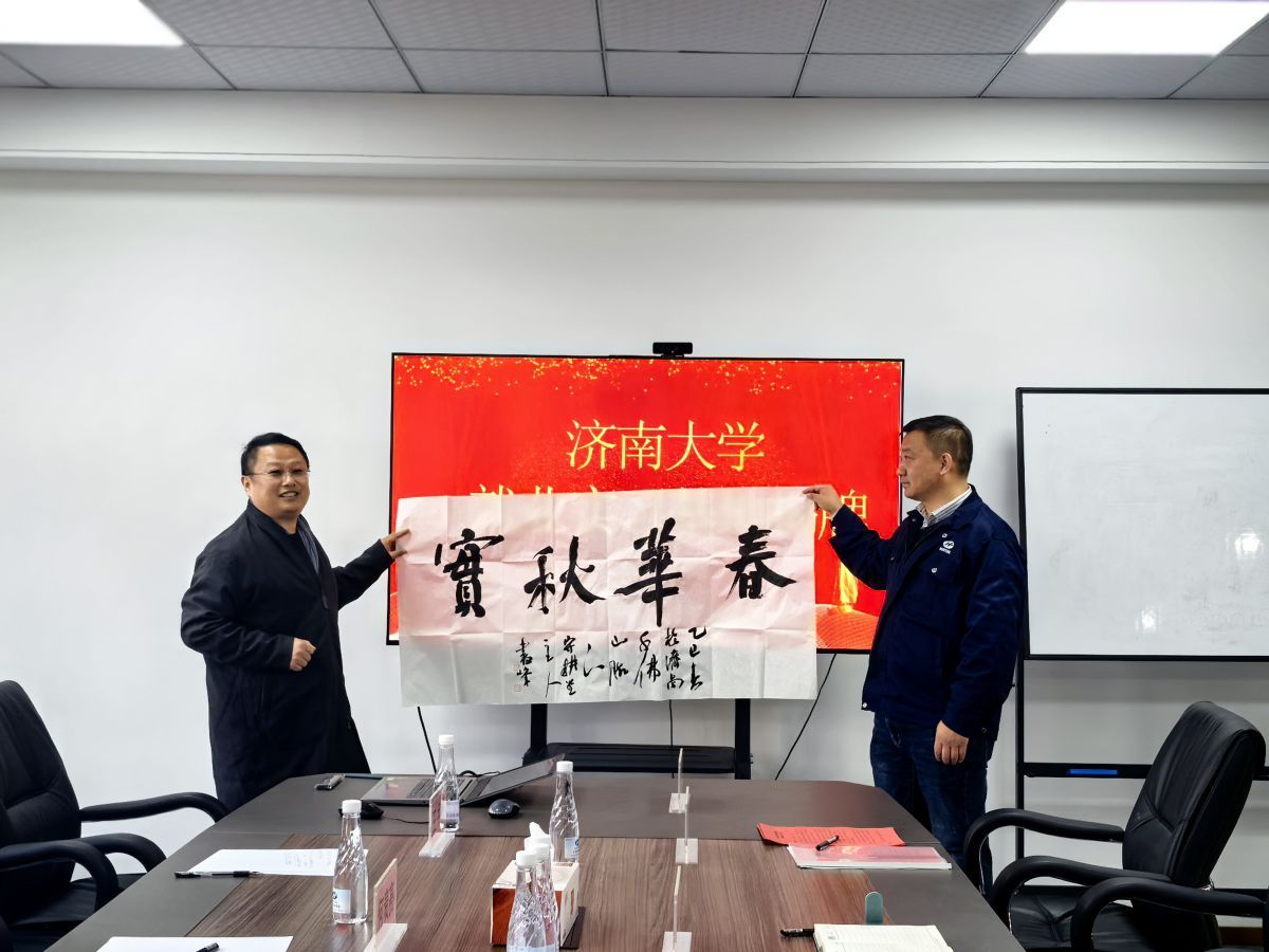 在潍坊,学院一行先后走访了潍坊市汇锋新材料科技公司、山东矿机集团股份有限公司、好太太食品有限公司以及稻田镇政府。寿光市政府张东光副市长、寿光市委组织部李效宪副部长、昌乐县科技副县长李倩、稻田镇镇长桑迎彬出席相关座谈活动。汇锋新材料科技公司专注新型材料研发生产,对产品包装、宣传展示设计要求颇高,双方探讨了在设计人才输送、产学研合作方面的可能,助力其包装设计与宣传展示的创新。山东矿机集团股份有限公司作为传统制造业企业,数字化转型中急需美术与设计专业人才助力产品智能化展示与企业形象升级,双方就专业人才支持开展路径探索,推动转型升级。好太太食品有限公司则在品牌推广、产品包装等方面表达了对专业设计人才的强烈需求,学院将强化就业实习工作,为企业注入设计活力。在与稻田镇政府交流时,双方探讨了在乡村文化建设、特色小镇规划设计等方面开展合作途径。王书峰教授充分发挥我院书法专业特长,结合企业特色精心创作书法作品,为本次访企拓岗增添了浓厚的文化氛围。