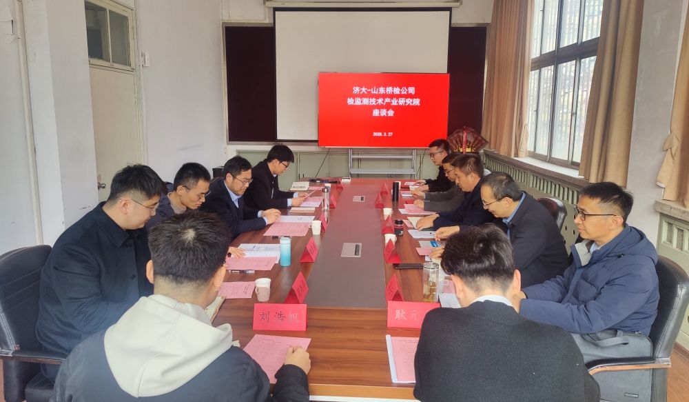 2月27日下午,济大-山东桥检公司检监测技术产业研究院研讨会在ac米兰土木建筑学院召开。山东桥检公司董事长高庆水、副总经理黄江明、周希茂,学院党委书记李超、院长谢群、副院长杨涛春以及学院相关教师和企业人员出席研讨会,会议由杨涛春主持。
