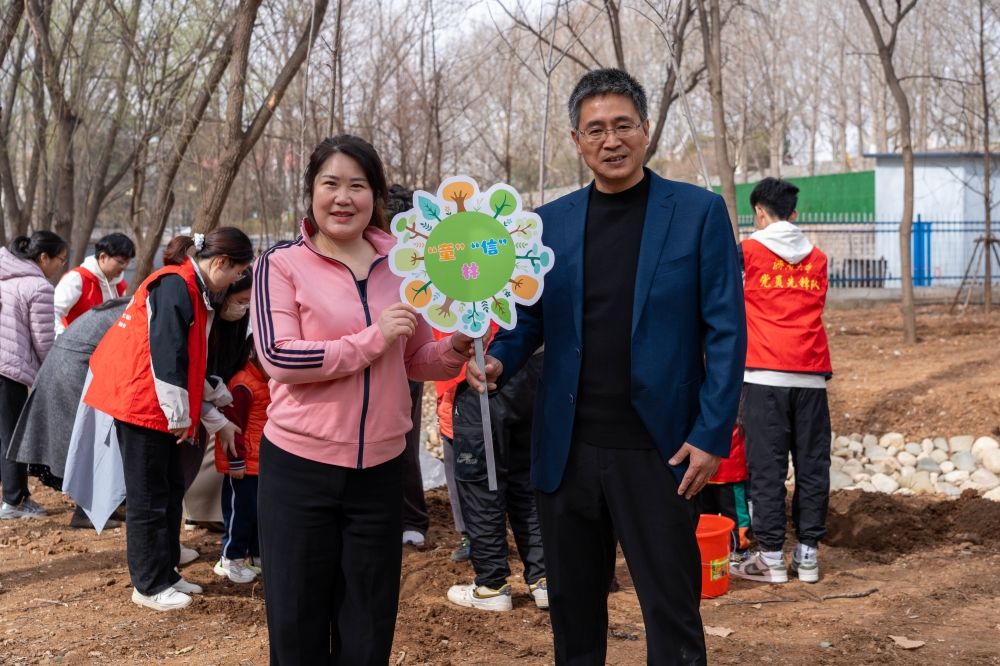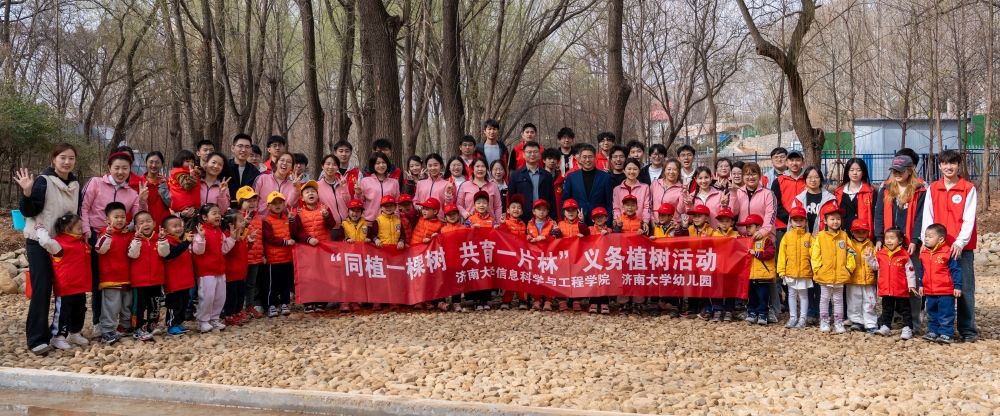 最是一年春光好,植树添绿正当时。为践行绿色发展理念,提升劳动育人实效,3月12日,在第四十七个植树节来临之际,信息科学与工程学院与ac米兰官方网站幼儿园联合开展“同植一棵树,共育一片林”义务植树活动。学院党委书记夏卫东,党委副书记、副院长郝伟,ac米兰官方网站幼儿园园长万晓霞,以及学院辅导员、幼儿园教师、学生志愿者、幼儿园小朋友代表共计90余人参加活动。