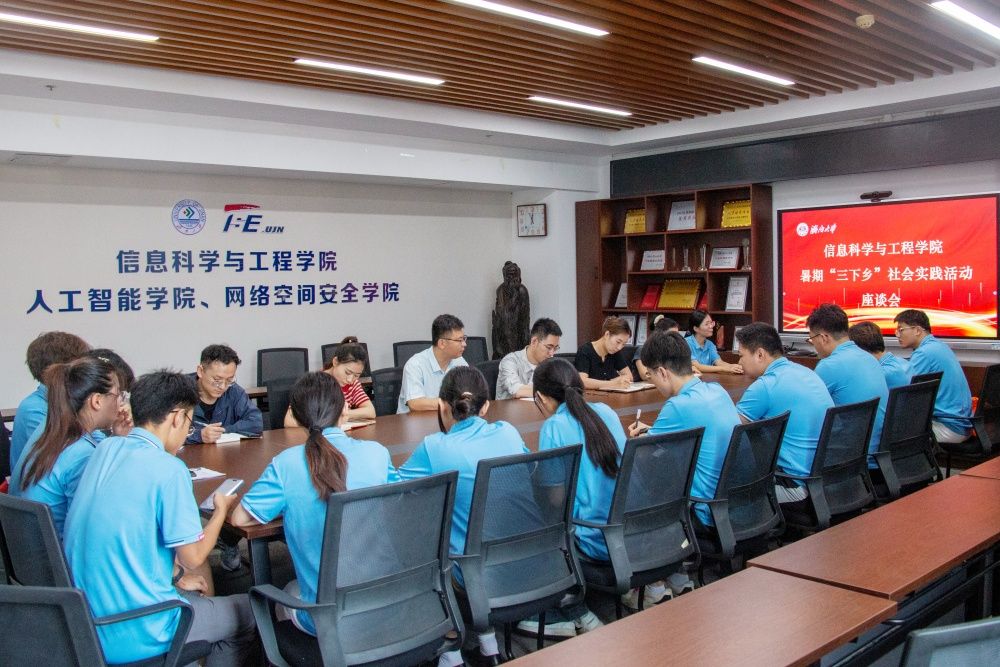 7月5日上午,信息科学与工程学院召开2025年暑期“三下乡”社会实践活动座谈会,学院党委书记夏卫东,党委副书记、副院长郝伟,各实践团队指导老师以及学生代表参加会议。