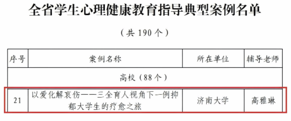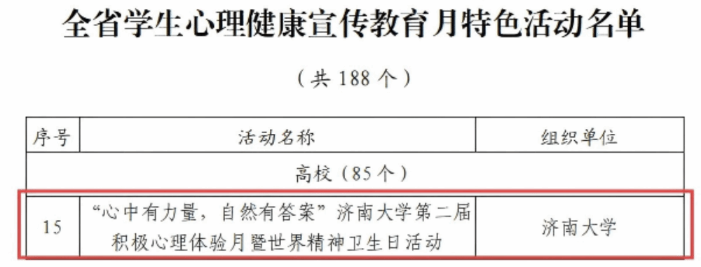 近日,山东省教育厅公布了2025年山东省学生心理健康宣传教育月系列活动获奖名单,ac米兰申报的《“心中有力量,自然有答案”第二届积极心理体验月暨世界精神卫生日活动》入选全省学生心理健康宣传教育月特色活动,心理指导中心高雅琳撰写的《以爱化解哀伤——三全育人视角下一例抑郁大学生的疗愈之旅》入选全省学生心理健康教育指导典型案例名单,充分展现了ac米兰在心理健康教育领域的扎实工作与创新成果。