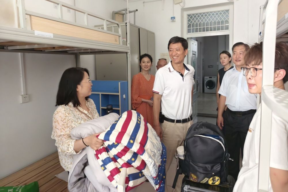 为深入了解2025级新生的生活状况、思想动态,帮助新生更快转变角色,适应新环境,新生报到当天,学院党委书记孟德洋、院长刘磊、党委副书记信苏珊、新生辅导员商智慧深入学生宿舍,为新生送去暖心的关怀和问候。