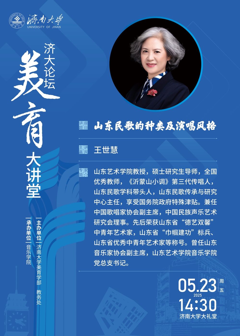 济大论坛·美育大讲堂:山东民歌的种类及演唱风格