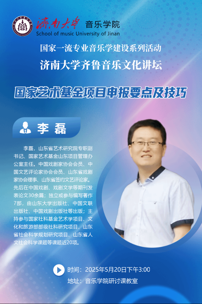 ac米兰官方网站齐鲁音乐文化讲坛——国家艺术基金项目申报要点及技巧