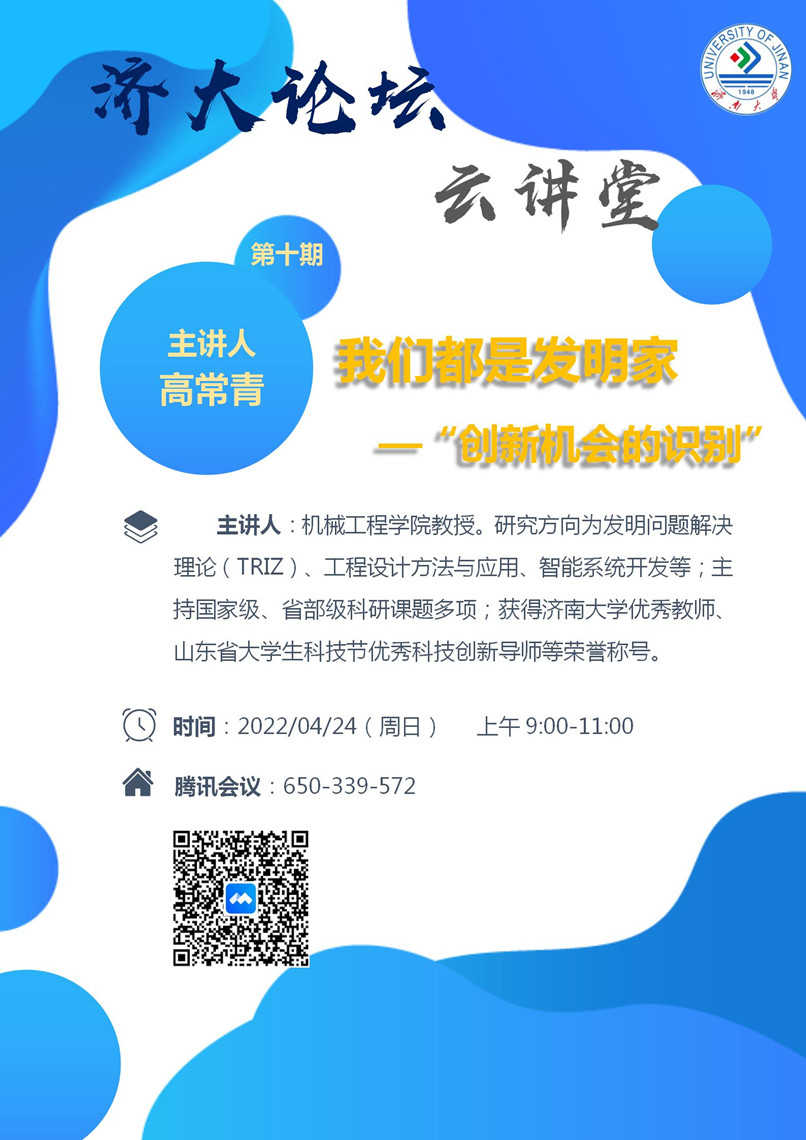 济大论坛“云讲堂”第十期:我们都是发明家 —“创新机会的识别”