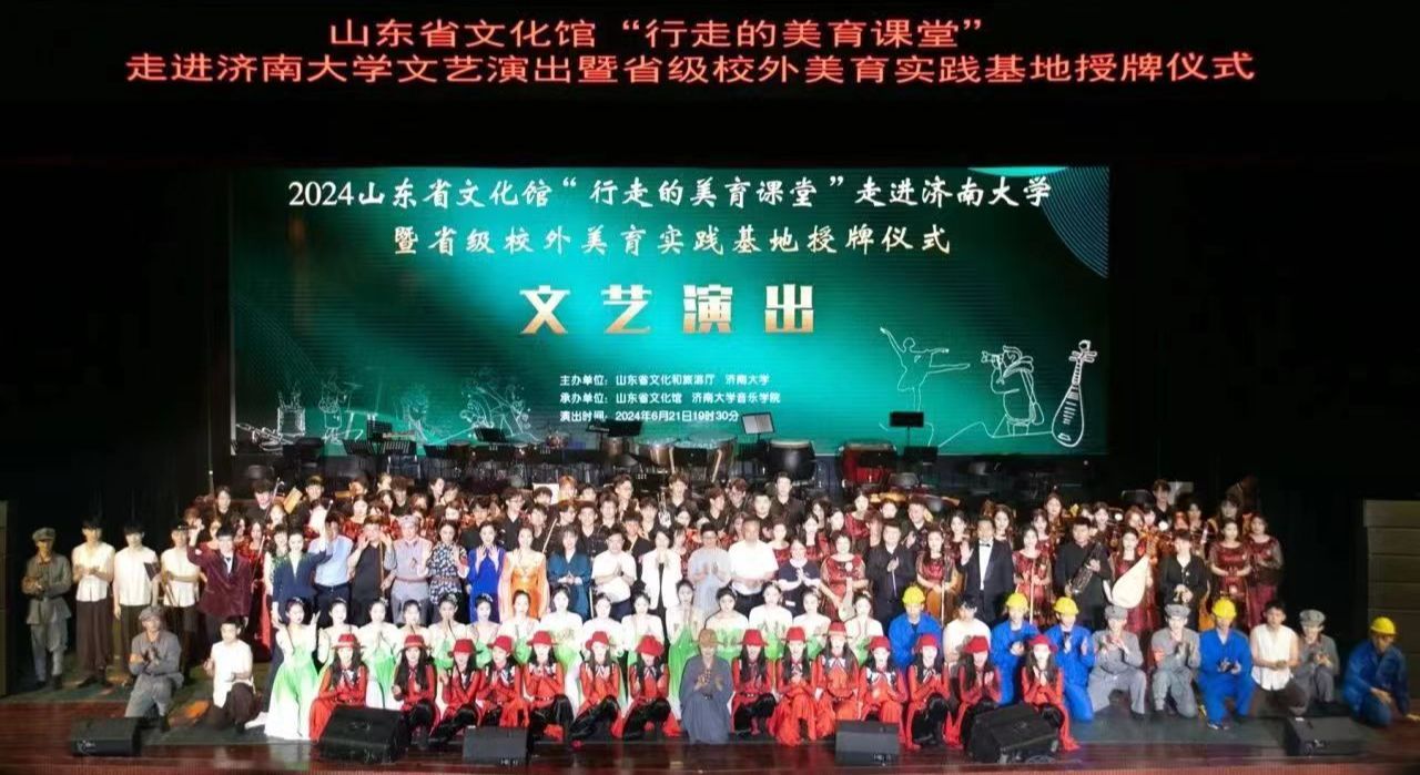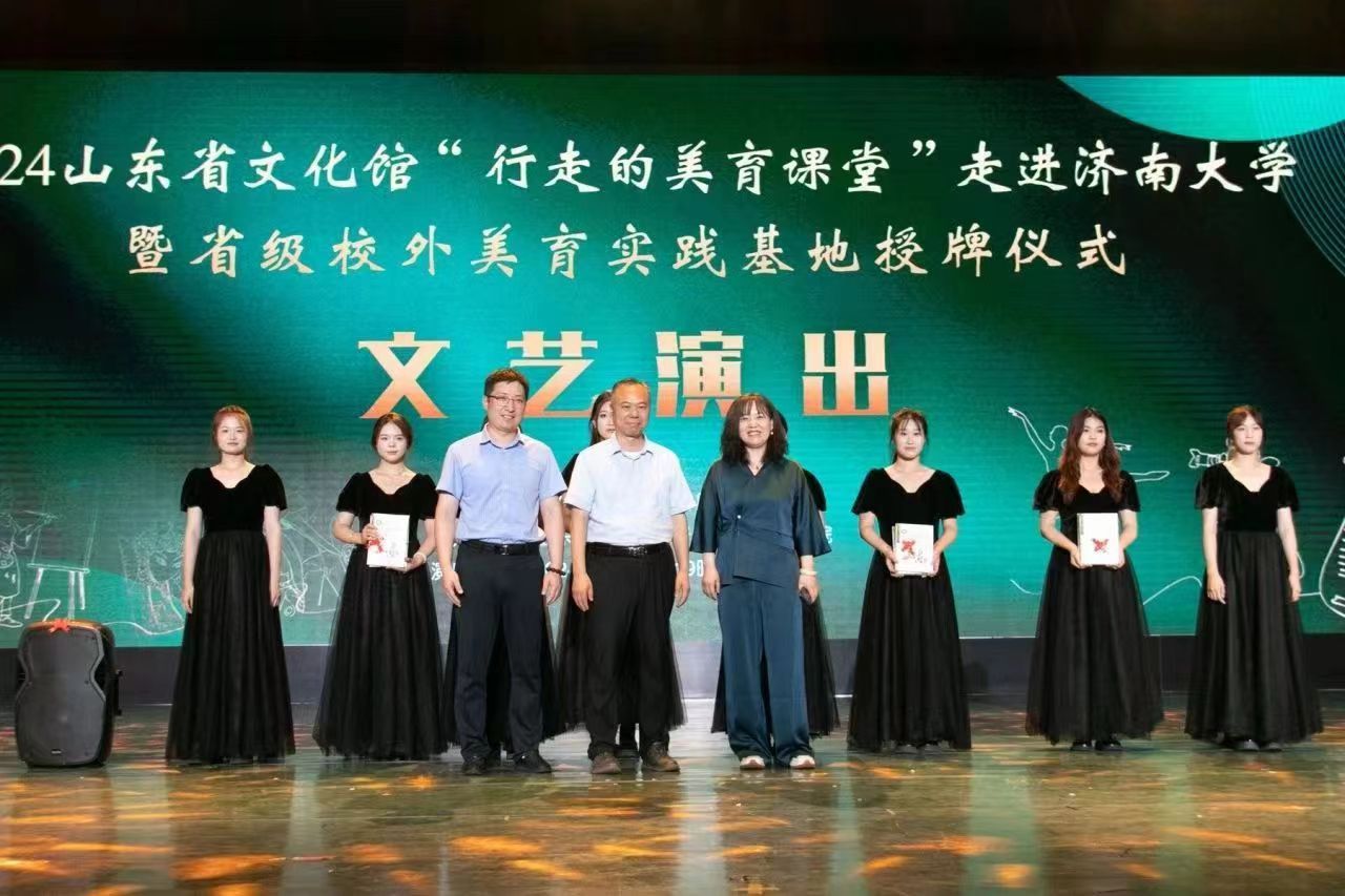 6月21日晚,山东省文化馆“行走的美育课堂”走进ac米兰官方网站文艺演出暨省级校外美育实践基地授牌仪式在济大礼堂举行,山东省文化馆副馆长王芹,ac米兰官方网站党委常委、副校长王霞,以及各部门相关领导、学校师生共同出席此次活动。