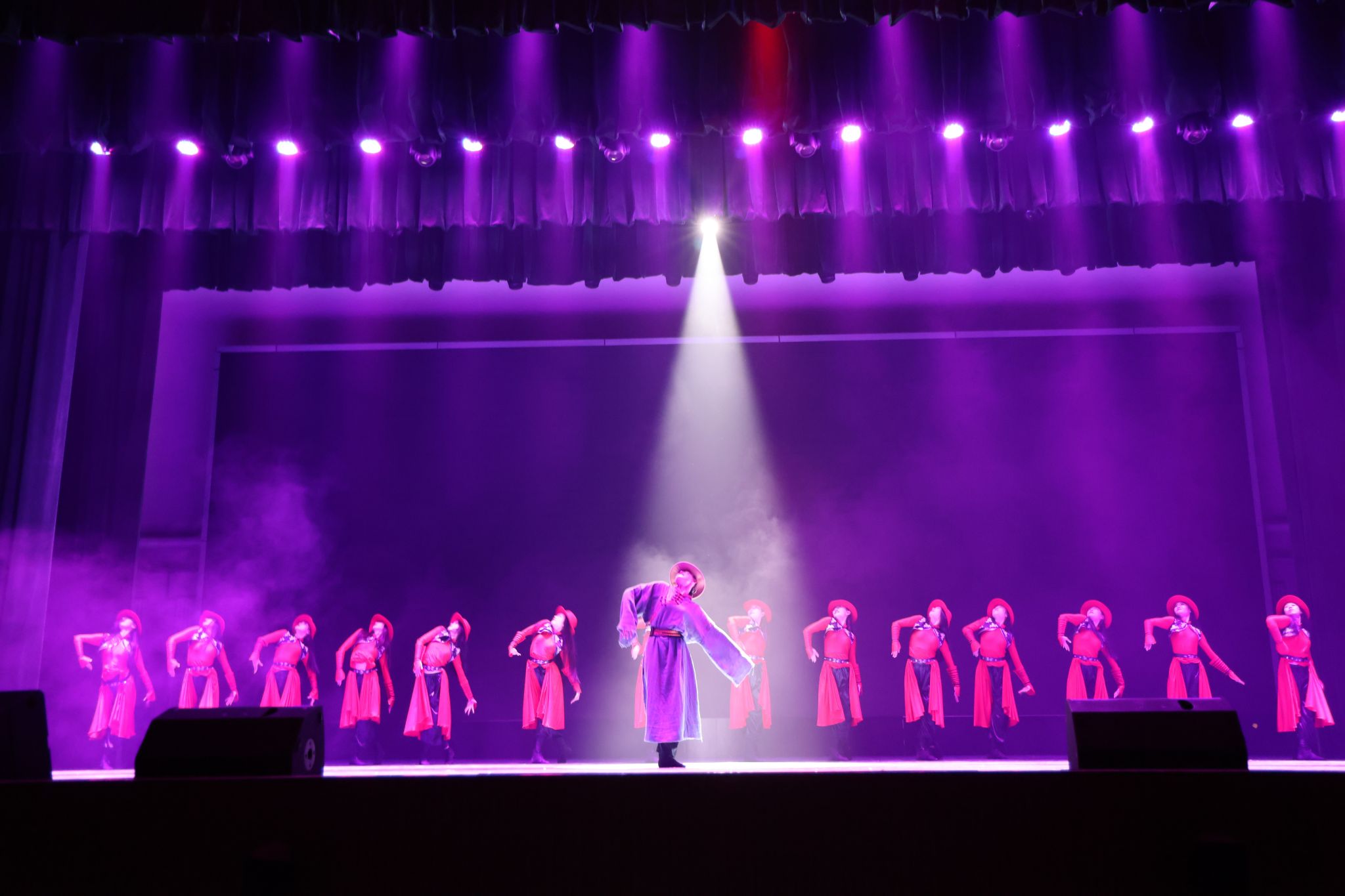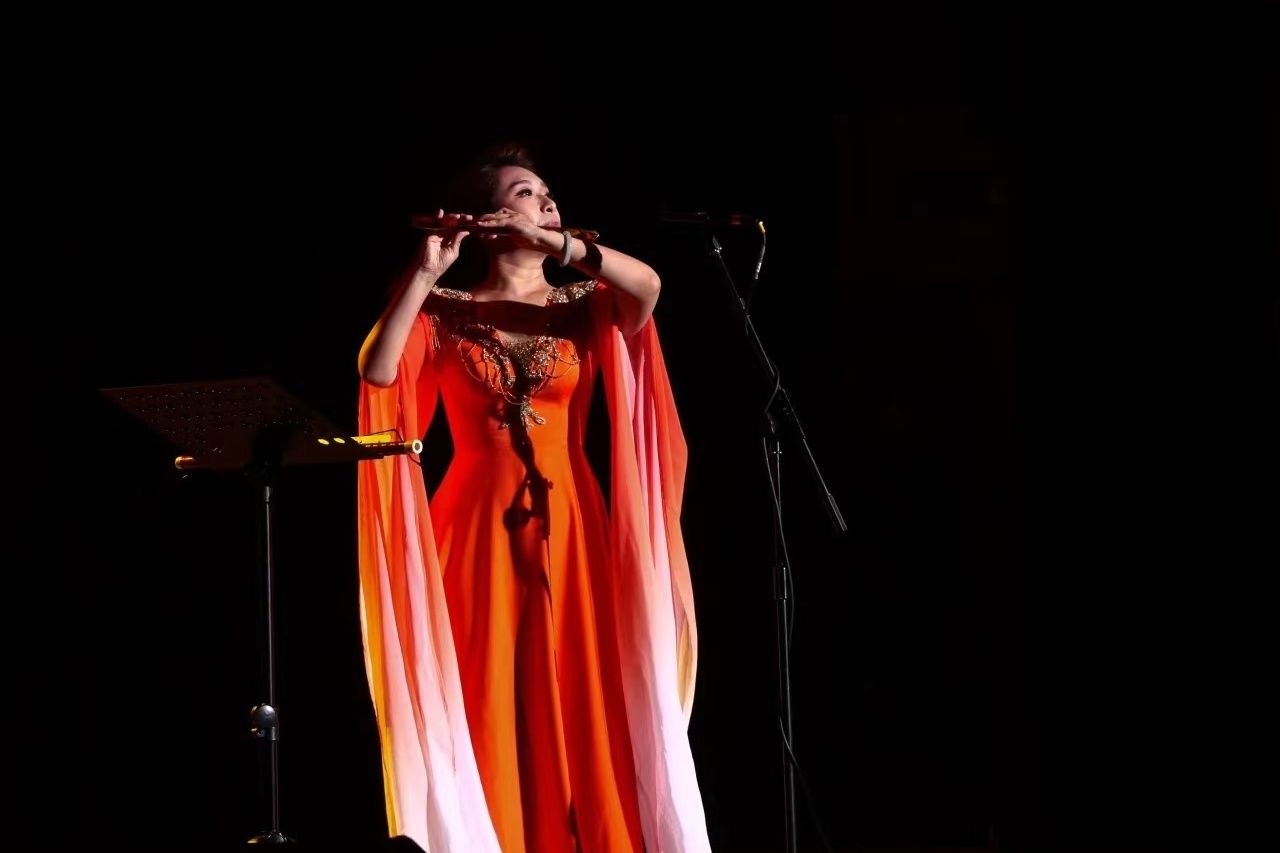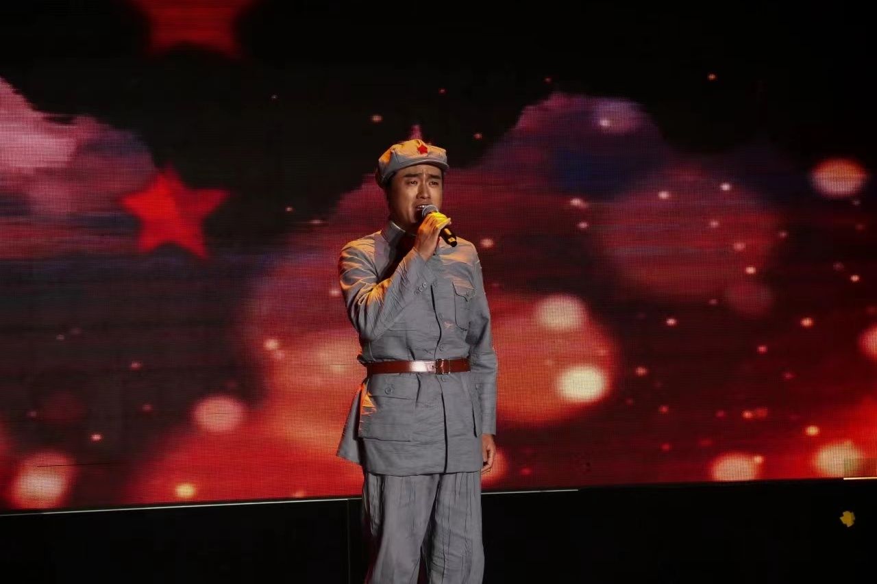 文艺演出以鼓乐合奏《龙腾虎跃》开场,鼓声激昂,展现中华民族气势与力量;山东快板《小段集锦》以幽默韵律串联生活趣事,逗乐观众;舞蹈《走近光里》颂扬蒙古族女性自信豁达,展现光的千变万化。下半场艺术党课以歌叙史,红色经典歌曲重温党史,感悟党的伟大成就与理想信念,汲取奋进力量;《印象国乐·大曲》结合传统音乐与现代技法,重塑敦煌古谱文化元素,彰显大国辉煌文化,演出在《我的祖国》磅礴大气的民族管弦乐合奏与合唱声中圆满落幕。整场演出汇集了中国古典音乐的蓬勃,中国民族舞蹈的刚劲,快板、传统相声的欢乐以及经典红色歌曲的民族气节。