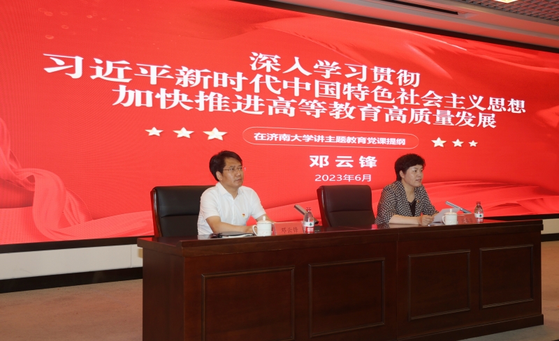 邓云锋以《深入学习贯彻习近平新时代中国特色社会主义思想 加快推进高等教育高质量发展》为题,从“全面理解把握习近平新时代中国特色社会主义思想的科学体系”“深入学习领会习近平总书记关于教育特别是高等教育的重要论述”“清醒分析明确高等教育发展的历史方位和趋势方向”“加快推进山东高等教育高质量发展”等四个方面进行了全面深刻的阐释。